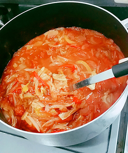 トマトベースにコンソメを入れてます☆煮込むとカサが減るので、食べやすいですよ♪